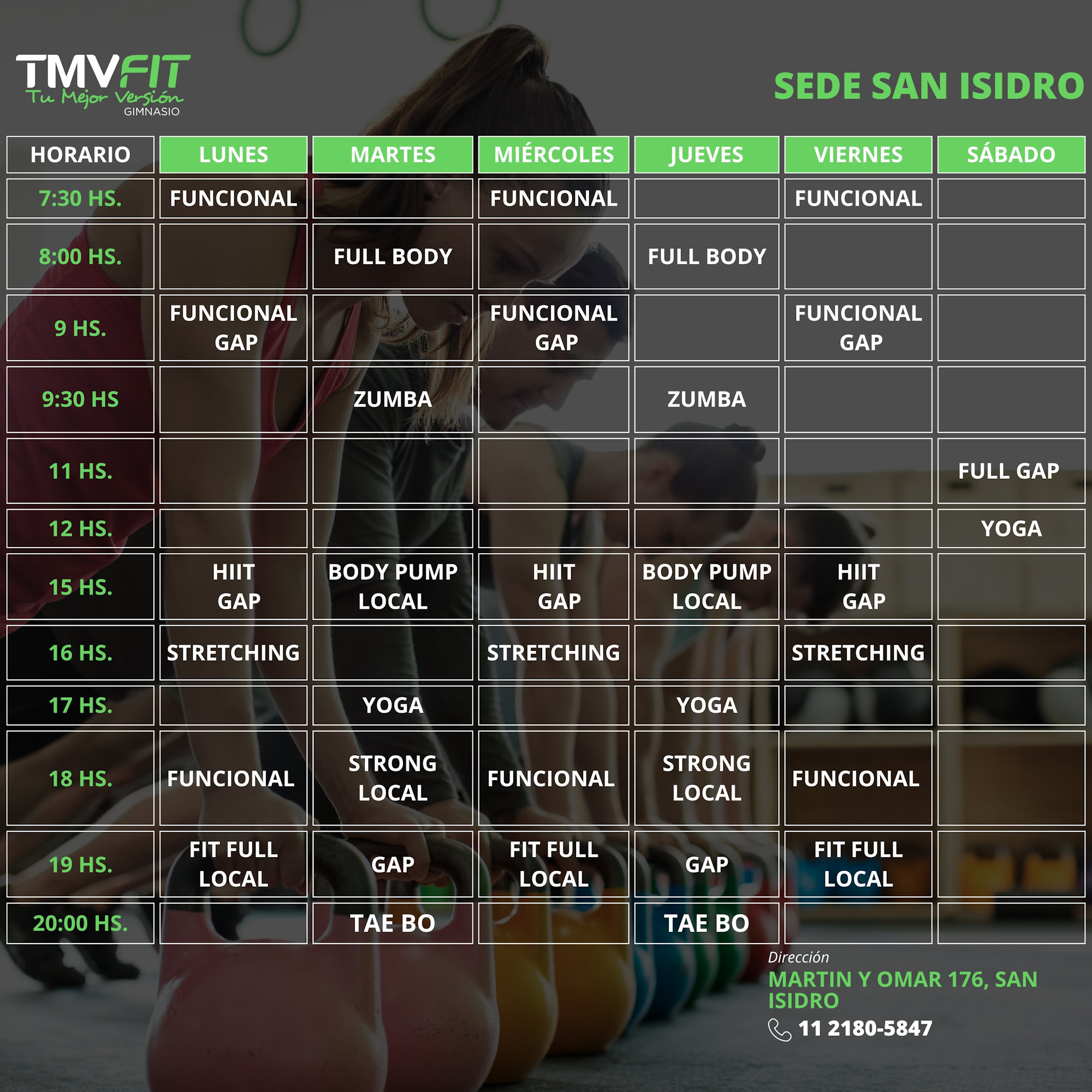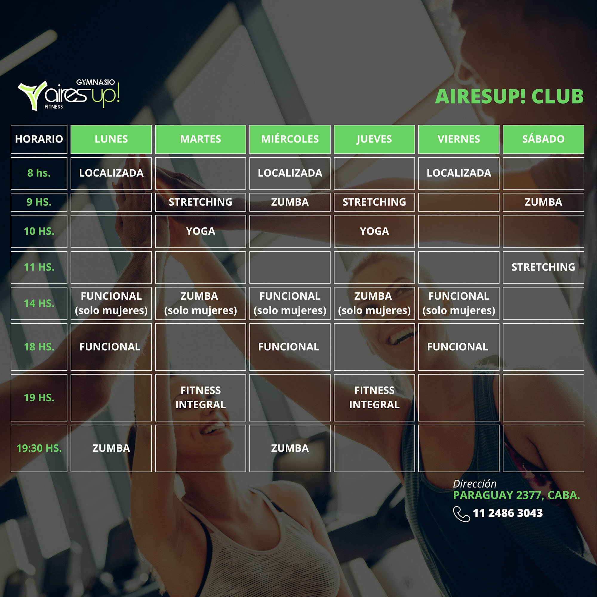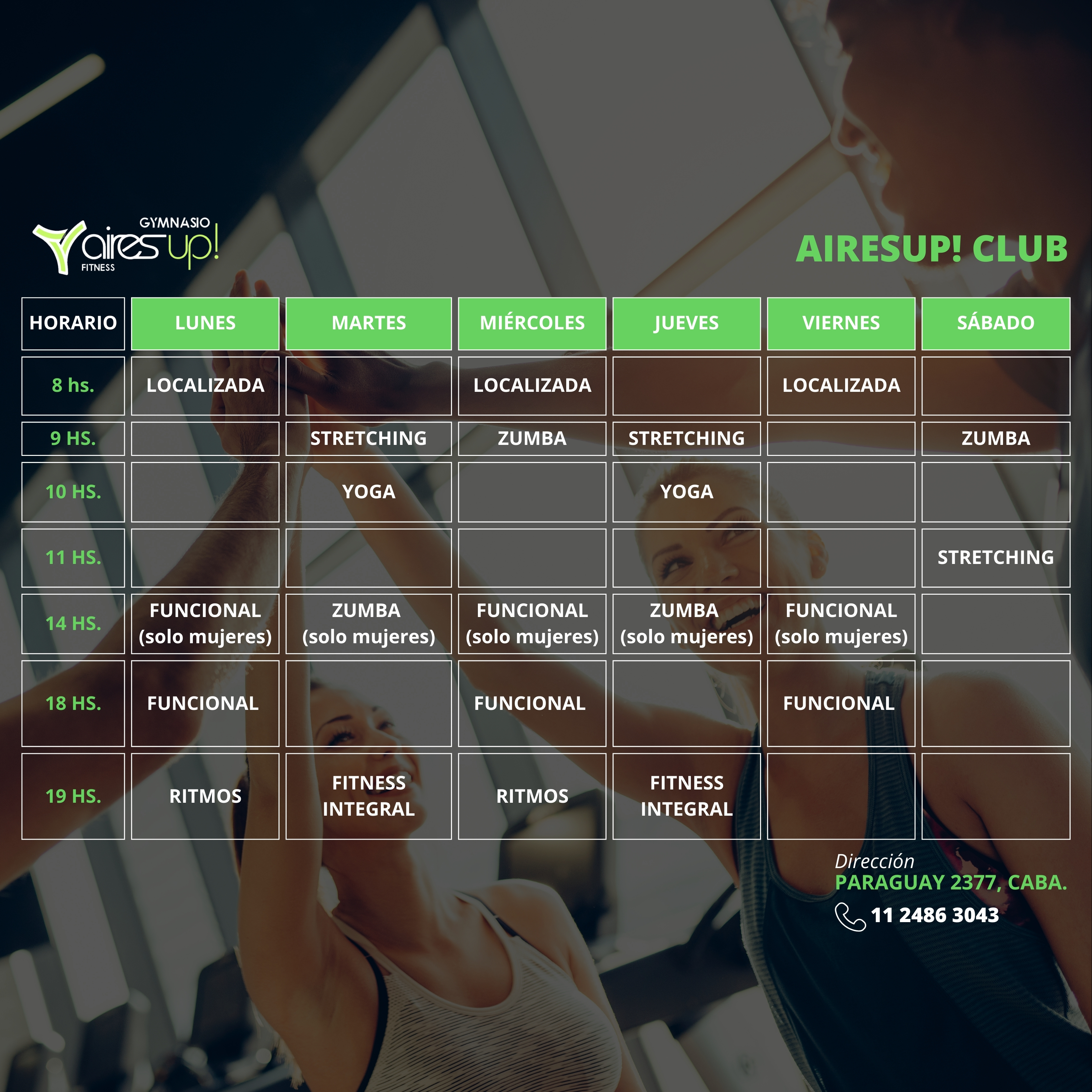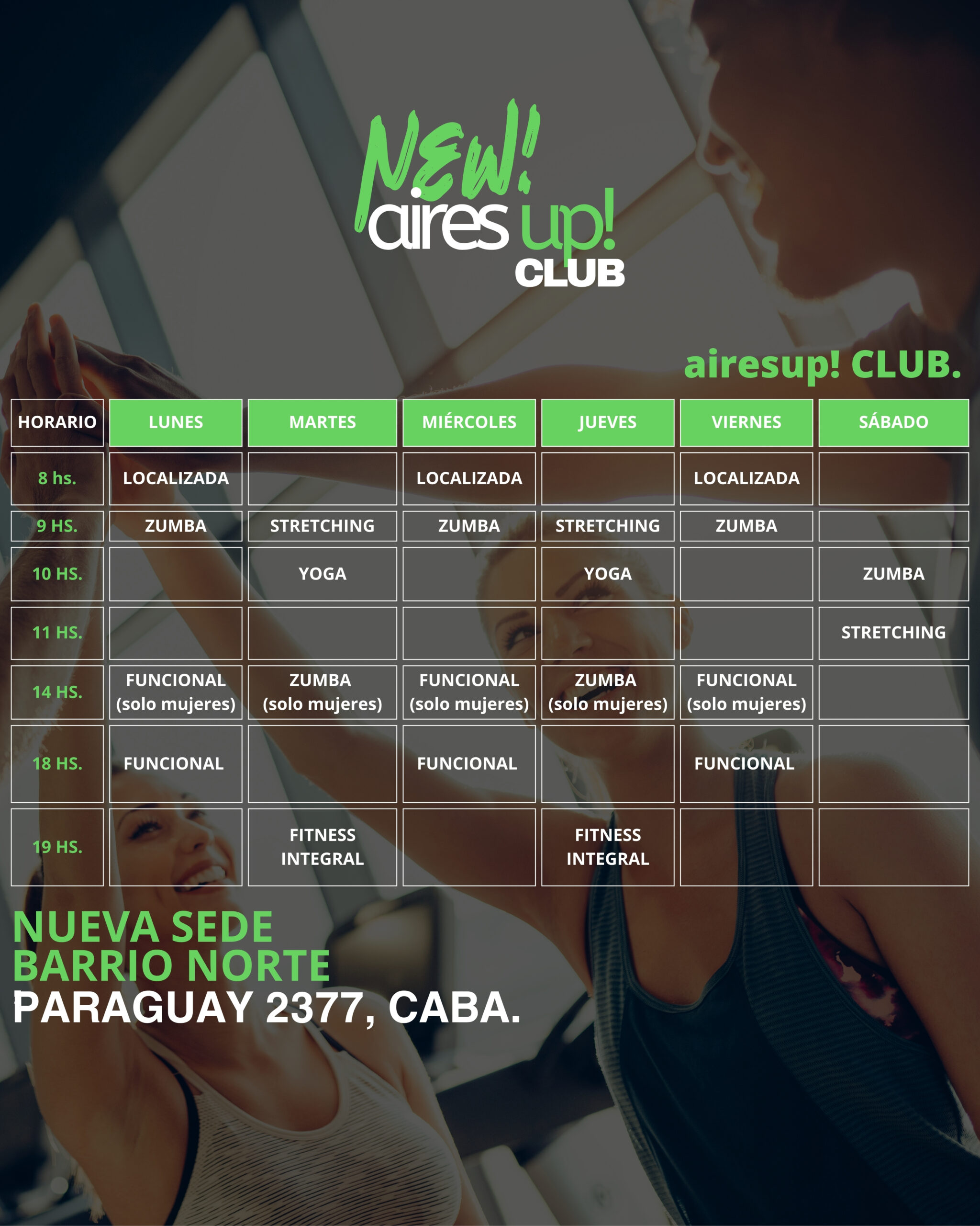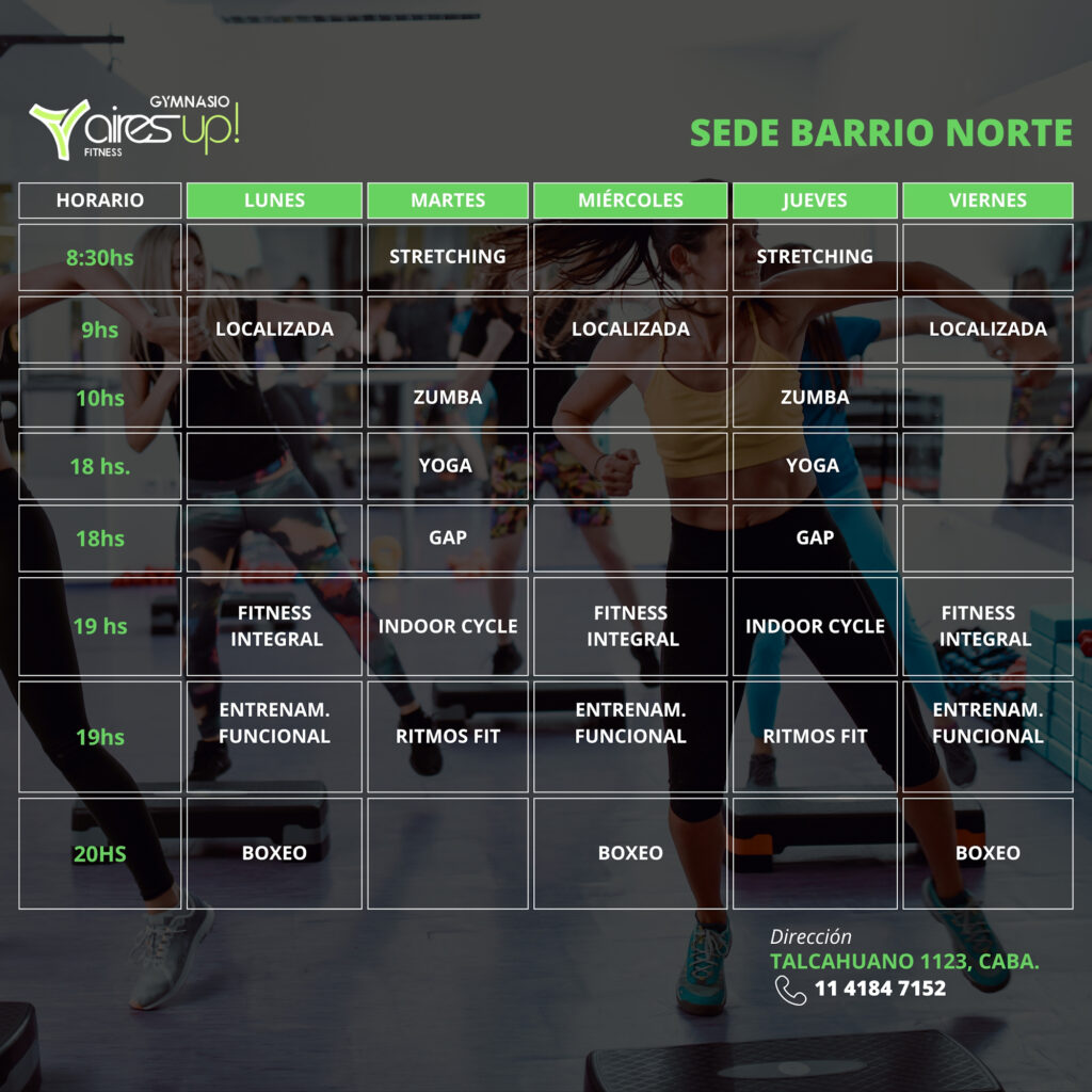 Recoleta Consultar 11 4184-2184 Barrio Norte Consultar 11 4184-7152 Airesup! Club (Gimnasio + Pileta) Consultar 11 24863043 San Isidro – TMV FIT Consultar 11 2180 5847